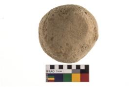 | Description / विवरण | A partially broken specimen of roughly round shaped hammer stone with battered periphery along with the circumference |