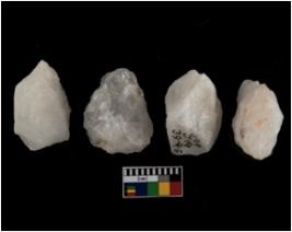 | Description / विवरण | There are n-4 of cores. All are made up of Quartz. All of them are intact fluted cores without any trace of crested ridge flakes. |