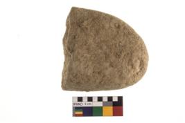 | Description / विवरण | A partially broken specimen of a oval shaped mueller stone with oval section. |