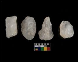 | Description / विवरण | There are n-4 of cores. All are made up of Quartz. All of them are intact fluted cores without any trace of crested ridge flakes. |