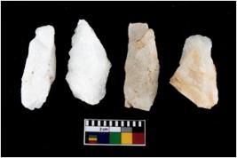 | Description / विवरण | There are n-4 of intact utilized flake cores made up of Quartz. Some of them have bulge of percussion and some are flat flakes. |
