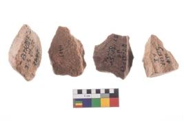 | Description / विवरण | Four worked utilised flakes. Many a times tapering and pointed at one end. |