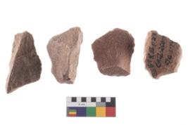 | Description / विवरण | Four worked utilised flakes. Many a times tapering and pointed at one end. |