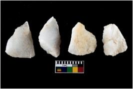| Description / विवरण | There are n-4 of intact utilized flake cores made up of Quartz. Some of them have bulge of percussion and some are flat flakes. |