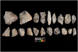 | Description / विवरण | There are n-20 of intact flake cores made up of Quartz. Some of them have bulge of percussion and some are flat flakes. |