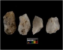| Description / विवरण | There are n-4 of cores. All are made up of Quartz. All of them are intact fluted cores without any trace of crested ridge flakes. |