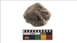 | Description / विवरण | A complete specimen of a gemstone garnet with bevelled sides with an octagonal cross-section. It is an unfinished bead. It is having rough surface and browinish reddish in colour. |