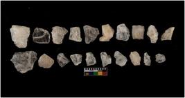 | Description / विवरण | There are n-20 of intact flake cores made up of Quartz. Some of them have bulge of percussion and some are flat flakes. |