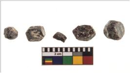 | Description / विवरण | A partially broken specimens n-5 of a gemstone garnet with bevelled sides with an hexagonal cross-section. All the specimens are having rough surface and brownish-reddish in colour. |