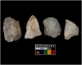 | Description / विवरण | There are n-4 of cores. All are made up of Quartz. All of them are intact fluted cores without any trace of crested ridge flakes. |