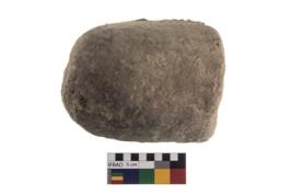 | Description / विवरण | A partially broken specimen of a oval shaped mueller stone with oval section. |