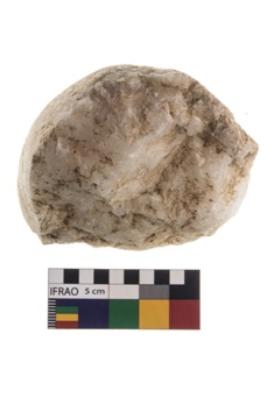 | Description / विवरण | A partially broken specimen of roughly round shaped hammer stone with battered periphery along with the circumference. |