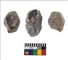 | Description / विवरण | A partially broken specimens n-3 of a gemstone garnet with bevelled sides with an octagonal cross-section. All of them are having rough surface and brownish-reddish in colour. |