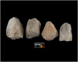 | Description / विवरण | There are n-4 of cores. All are made up of Quartz. All of them are intact fluted cores without any trace of crested ridge flakes. |