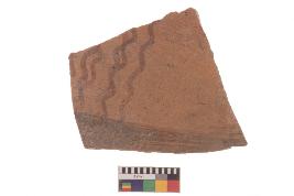 | Description / विवरण | Specimen of red ware with decorative wavy line pattern. |