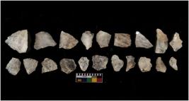 | Description / विवरण | There are n-20 of intact flake cores made up of Quartz. Some of them have bulge of percussion and some are flat flakes. |