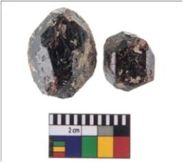 | Description / विवरण | A partially broken specimens n-2 of a gemstone garnet with bevelled sides with an octagonal cross-section. It is having rough surface and brownish-reddish in colour. |