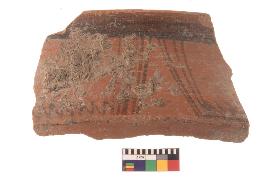 | Description / विवरण | Specimen of black on red ware with black decorative Parallel and criss cross lines geometric painting. |