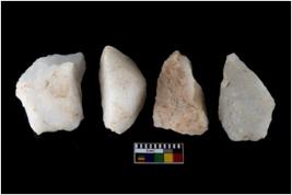 | Description / विवरण | There are n-4 of intact utilized flake cores made up of Quartz. Some of them have bulge of percussion and some are flat flakes. |