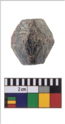 | Description / विवरण | A partially broken specimen of a gemstone garnet with bevelled sides with an hexagonal cross-section. It is having rough surface and brownish-reddish in colour. |
