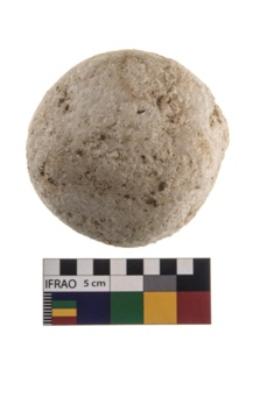 | Description / विवरण | A partially broken specimen of roughly round shaped hammer stone with battered periphery along with the circumference. |