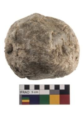 | Description / विवरण | A partially broken specimen of roughly round shaped hammer stone with battered periphery along with the circumference. |