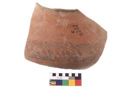 | Description / विवरण | Specimen of black on red ware with black decorative Parallel cross lines geometric painting. |