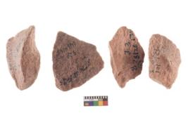 | Description / विवरण | Four worked utilised flakes. Many a times tapering and pointed at one end. |