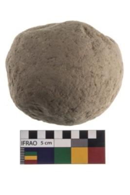 | Description / विवरण | A partially broken specimen of roughly round shaped hammer stone with battered periphery along with the circumference. |