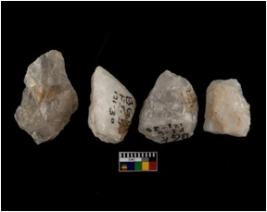 | Description / विवरण | There are n-4 of cores. All are made up of Quartz. All of them are intact fluted cores without any trace of crested ridge flakes. |