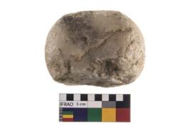 | Description / विवरण | A partially broken specimen of roughly round shaped hammer stone with battered periphery along with the circumference. |