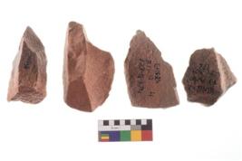| Description / विवरण | Four worked utilised flakes. Many a times tapering and pointed at one end. |