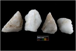 | Description / विवरण | There are n-4 of intact utilized flake cores made up of Quartz. Some of them have bulge of percussion and some are flat flakes. |