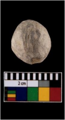 | Description / विवरण | A partially broken specimen of terracotta slingball with a roughly circular shape. It is having rough surface and greyish in colour. It is well fired. |