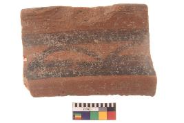 | Description / विवरण | Specimen of black on red ware with black decorative Joint curves geometric painting. |