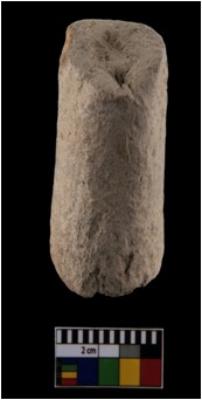 | Description / विवरण | A complete specimen of terracotta weight with cylindrical shape. The oject s height is greater than width of its base. It is probably used as a gamesman object. It is having a deep groove at its bottom surface. It is having rough surface and greyish in colour. It is well fired. |