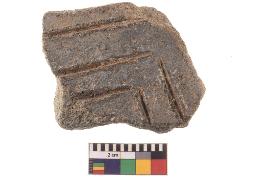 | Description / विवरण | Specimen of red ware with decorative Parallel criss cross lines engraved geometric design. |