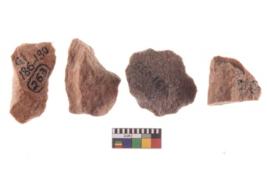 | Description / विवरण | Four worked utilised flakes. Many a times tapering and pointed at one end. |