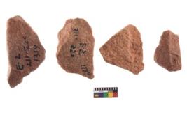 | Description / विवरण | A specimen of flake tool with prominent flaking marks. It made up of a short flakes with sides trimmed. |