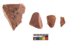 | Description / विवरण | A specimen of flake tool with prominent flaking marks. It made up of a short flakes with sides trimmed. |
