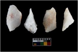 | Description / विवरण | There are n-4 of intact utilized flake cores made up of Quartz. Some of them have bulge of percussion and some are flat flakes. |