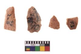 | Description / विवरण | A specimen of flake tool with prominent flaking marks. |
