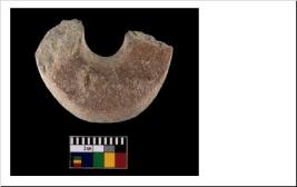 | Description / विवरण | A partially broken specimen of disc shaped terracotta net sinker. It is wheel-made with well-levigated clay. The perforation widens near the edges and narrows inside. It is relatively heavy. It is having rough surface and reddish in colour. It is coarse and well fired. |