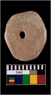 | Description / विवरण | A complete specimen of terracotta perforated disc made from coarse Red ware sherd slipped on both sides. The slip has eroded from the area around the perforation and diameter edge. The outer edge is uneven. It is wheel-made with well-levigated clay. It is quite light-weight. It is well fired. |