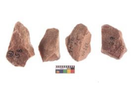 | Description / विवरण | Four worked utilised flakes. Many a times tapering and pointed at one end. |