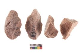 | Description / विवरण | Four worked utilised flakes. Many a times tapering and pointed at one end. |