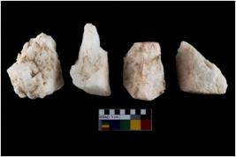 | Description / विवरण | There are n-4 of intact utilized flake cores made up of Quartz. Some of them have bulge of percussion and some are flat flakes. |