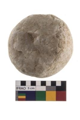 | Description / विवरण | A partially broken specimen of roughly round shaped hammer stone with battered periphery along with the circumference. |