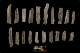 | Description / विवरण | 20 chalcedony blades with retouch all along on both sides. |