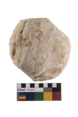| Description / विवरण | A partially broken specimen of roughly round shaped hammer stone with battered periphery along with the circumference. |